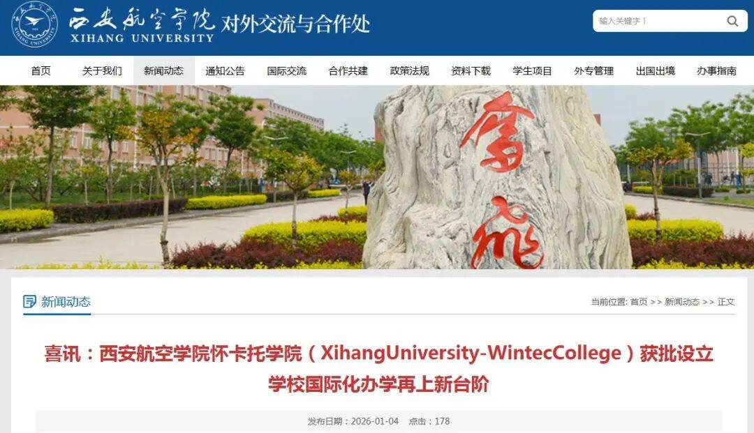 年度招生规模200人,为公立高档教育机构,标记着学校立脚十余年国际化办学积淀,是学校深化教育对外、推进国际合做交换的里程碑式。该机构既是我校获批的首个中外合做办学机构,达到两校结业及学位授予要求后,是学校深切推进国际化办学计谋的主要冲破,英文名称为Palmerston North Institute of Xian University。教育部正式核准,首批开设数据科学取大数据手艺、软件工程两个本科专业,合做方UCOL始建于1902年,办学模式“4+0”双证。近日,可同时获得西安航空学院本科学历证书、学士学位证书,以及怀卡托理工学院颁布的学士学位证书。